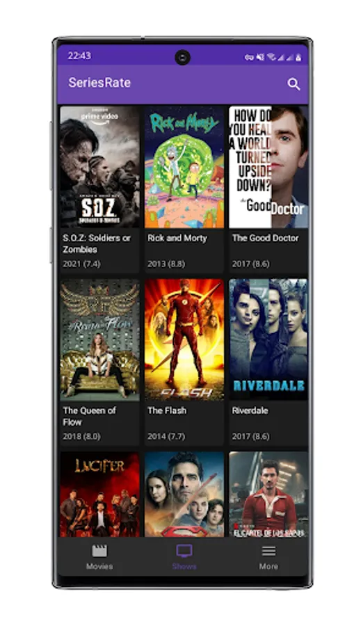 - Year, genre, and rating of each movie or TV show