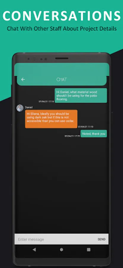 - Quick call, text, or email staff members, subcontractors, and suppliers.