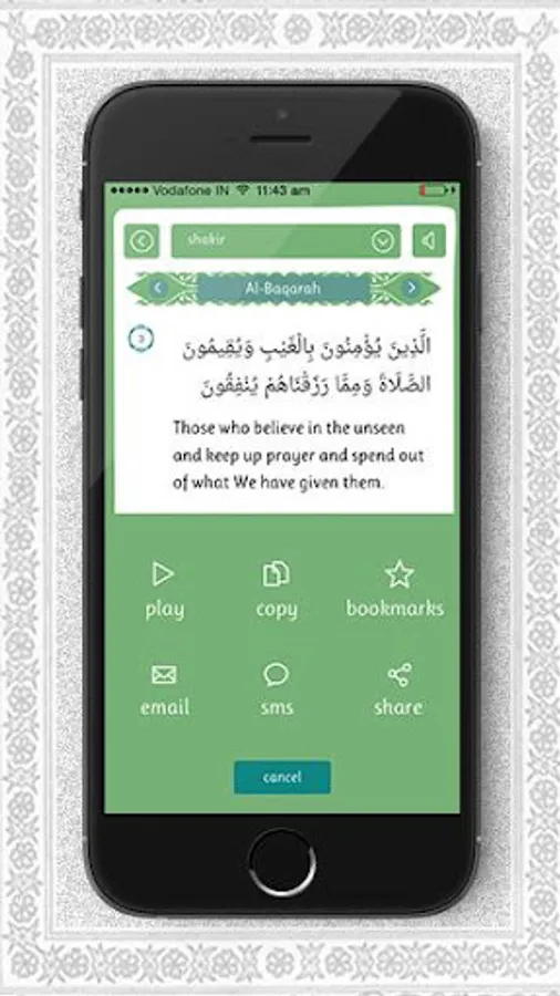 - Ability to share Ayath and translations via email, twitter, facebook, etc.