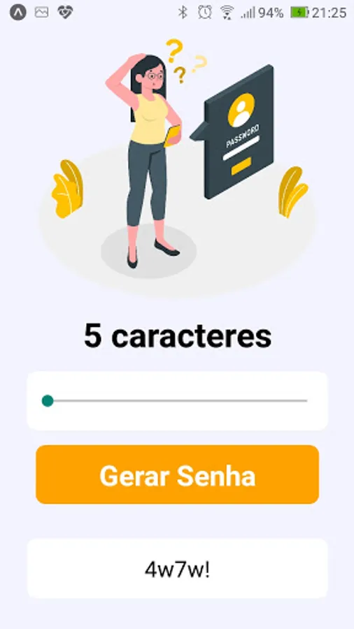 App for generating secure passwords at random between 5 and 15 characters counting uppercase, lowercase, numbers and special characters