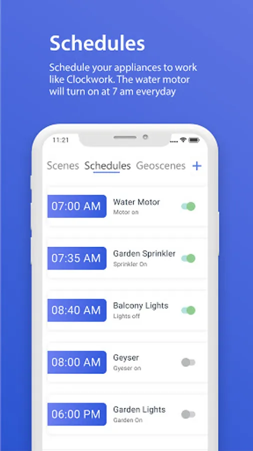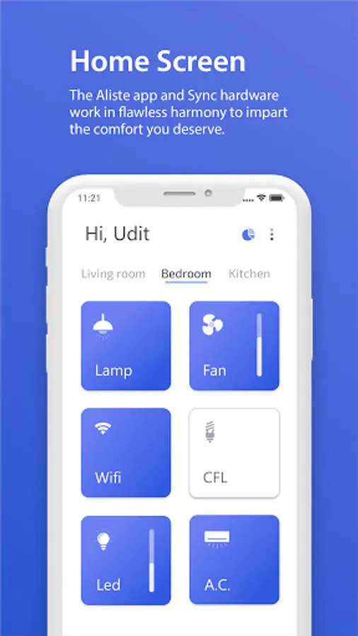 With Aliste, it becomes easier for an user to control all the appliances with a single touch on their smartphone. The App can be used to turn switches on and off according to the user’s requirement. Furthermore, the App also enables the following mentioned functions: