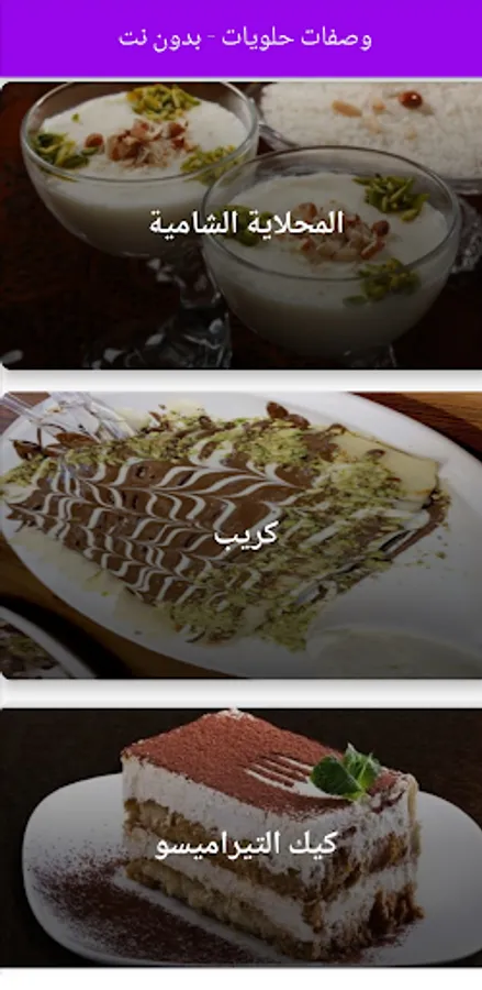 By using the Dessert Recipes application, you will reach the development of your skills in preparing desserts, and you will not need to buy cookbooks or watch cooking programs, just install the application and surprise your family and guests with the most wonderful recipes.