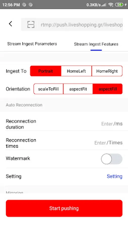 You can stream at the Portrait or Landscape position, use the flash during stream, front or rear camera, special effects (retouching, makeup, filters, stickers) and add watermarks.