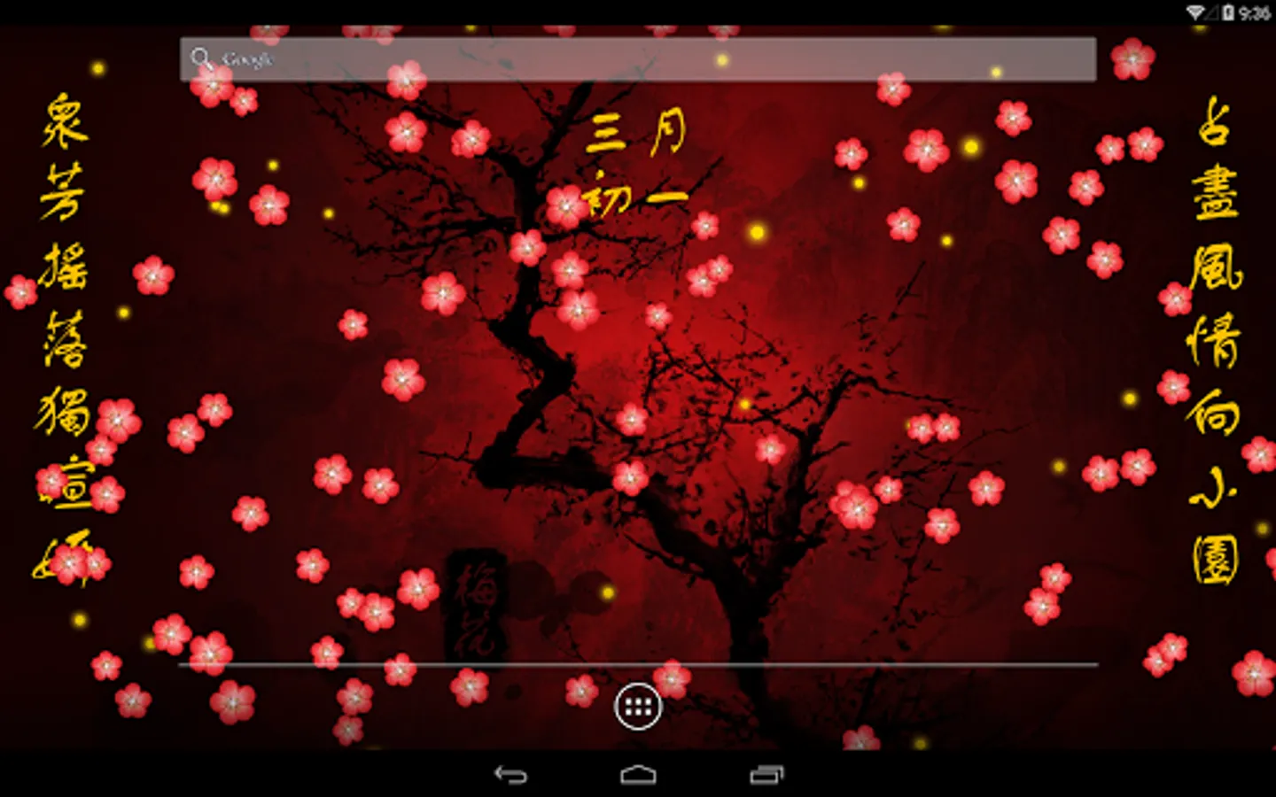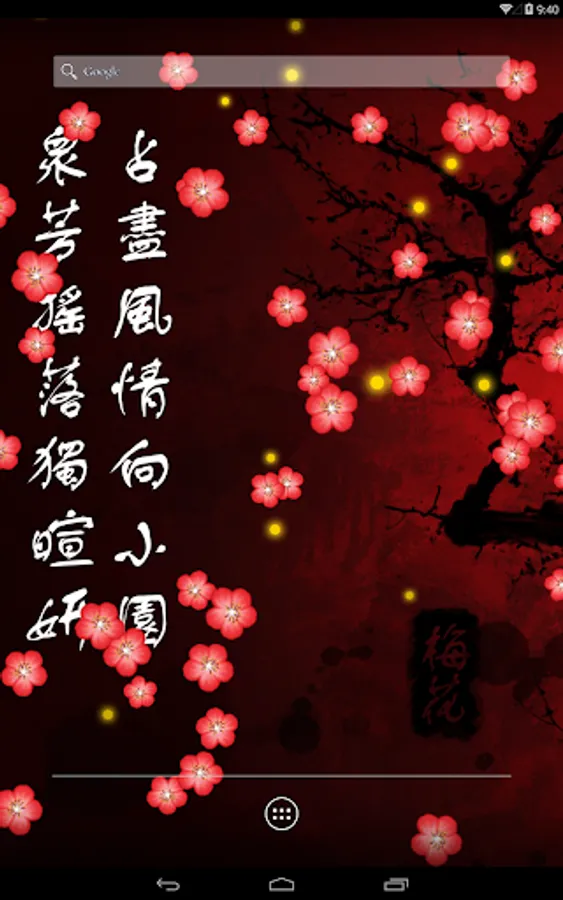 Beloved Plum Blossom Live Wallpaper with beautiful and interactive plum blossom falling down slowly. This wallpaper is even included with a lunar date and changeable poetry.