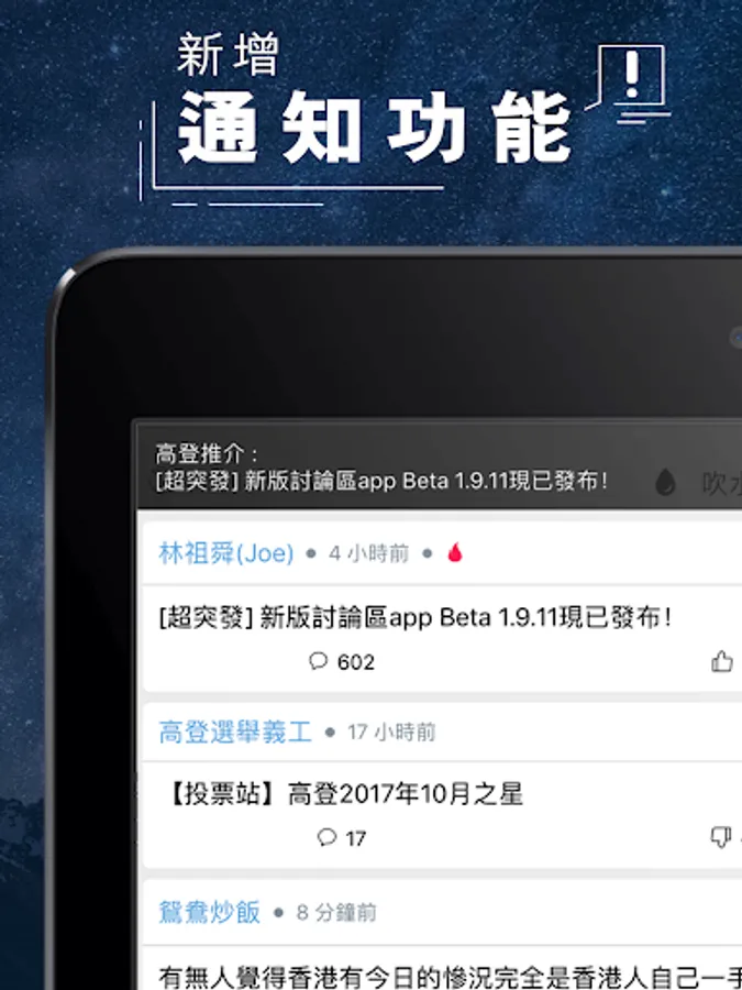 現在高登全新官方app「HKG」正式登陸ANDROID平台,採用嶄新用戶介面設計,並支援多款主題顯示風格,致力為各位巴絲打提供全面的使用體驗,功能包括: