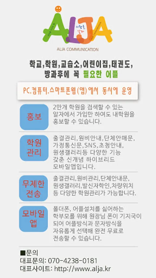 It is a management system used in all educational sites such as schools, academies, classrooms, after-school schools, private lessons, cultural centers, care classes, study rooms, kindergartens, and daycare centers.