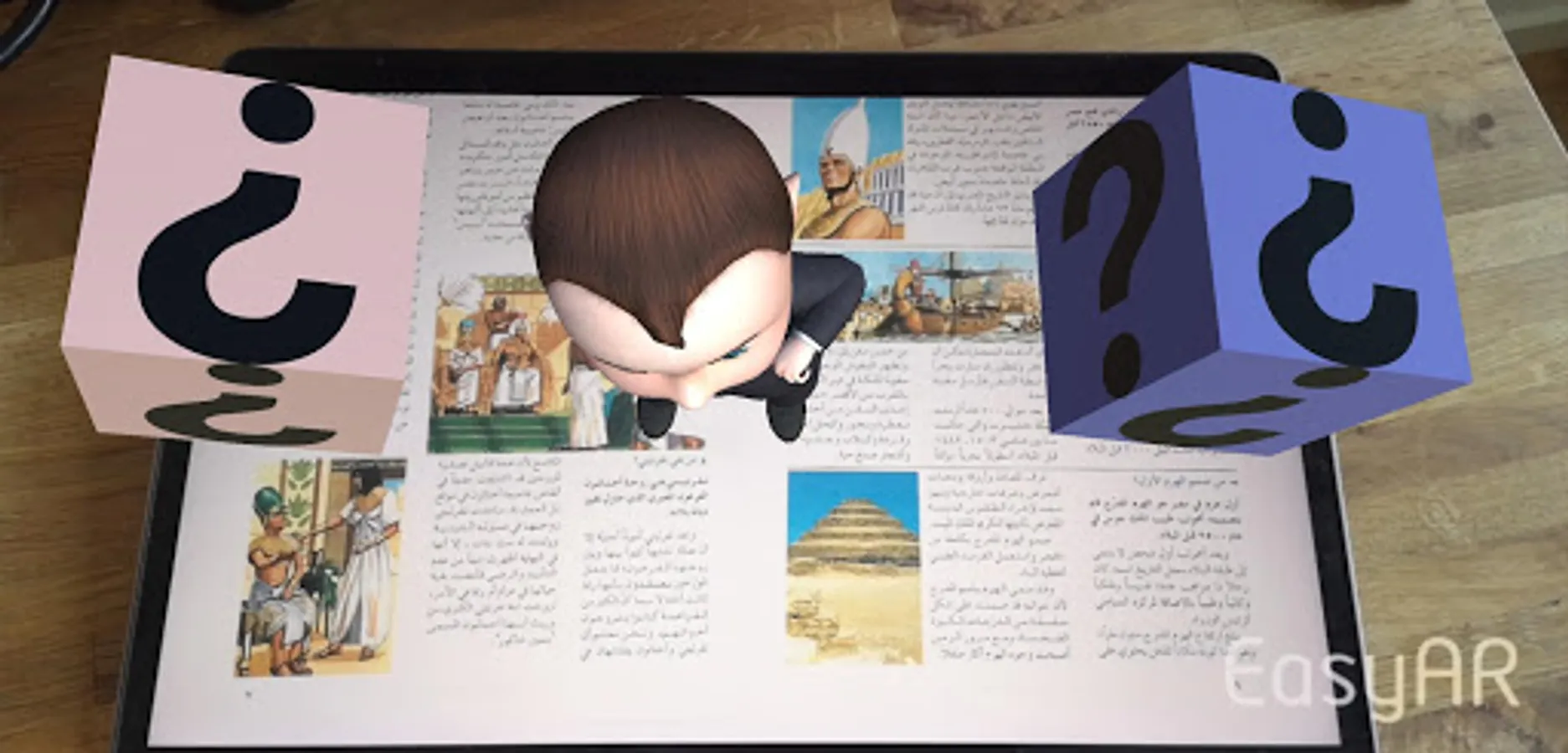 What do you know about celebrities is an educational book that includes multiple scientific topics developed through the design of this application where you can see 3D models and buttons that appear on the surface of the page in the form of a cube and this happens when you use the application camera so that it recognizes the page and each page has figures and special buttons And this is called augmented reality. When you click on the cube button, a new page appears with several options, such as watching a video talking about the current page or a 3D scene using the freshness of virtual reality.