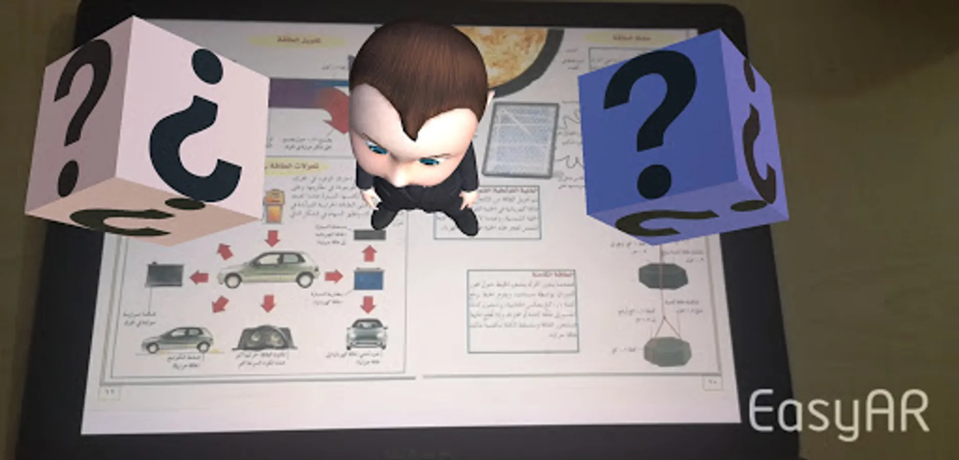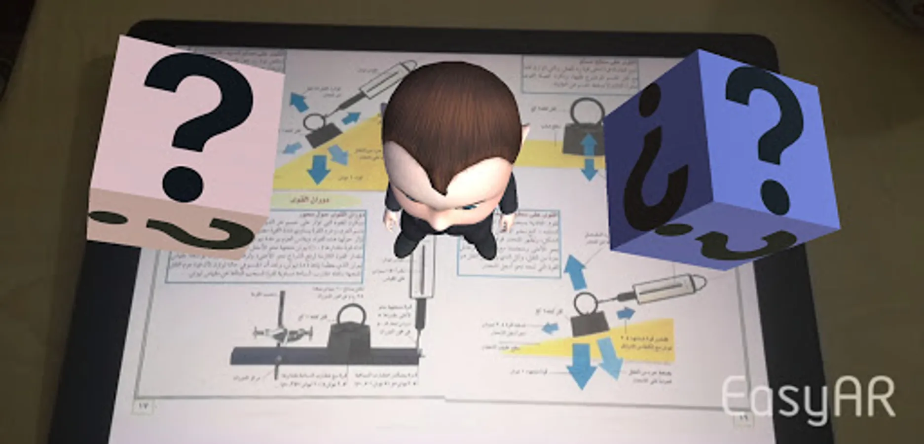 The Pictorial Encyclopedia of Physics is an educational book that includes multiple scientific topics developed through the design of this application where you can see 3D models and buttons that appear on the surface of the page in the form of a cube and this happens when you use the application camera so that it recognizes the page and each page has its own figures and buttons This is called augmented reality. When you click on the cube button, a new page appears with several options, such as watching a video talking about the current page or a 3D scene using the freshness of virtual reality.
