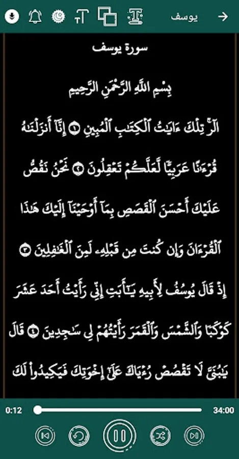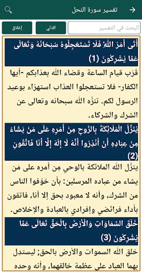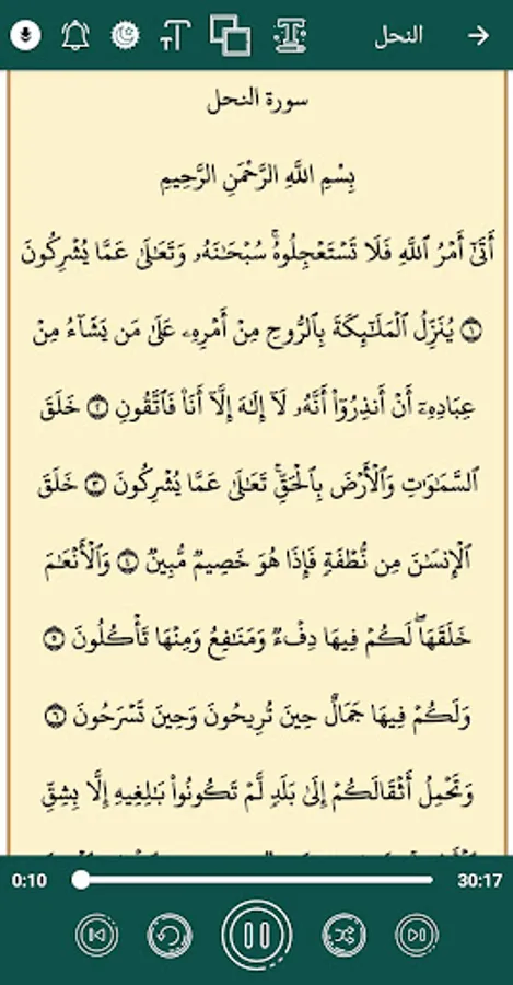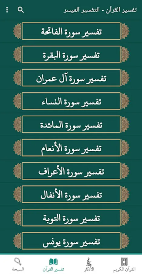 By pressing the (Next Surah) and (Previous Surah) button, you can listen to the previous surahs of the surah you are listening to, as well as the following surahs. The program also shows you the duration of each surah so that you are aware of this.