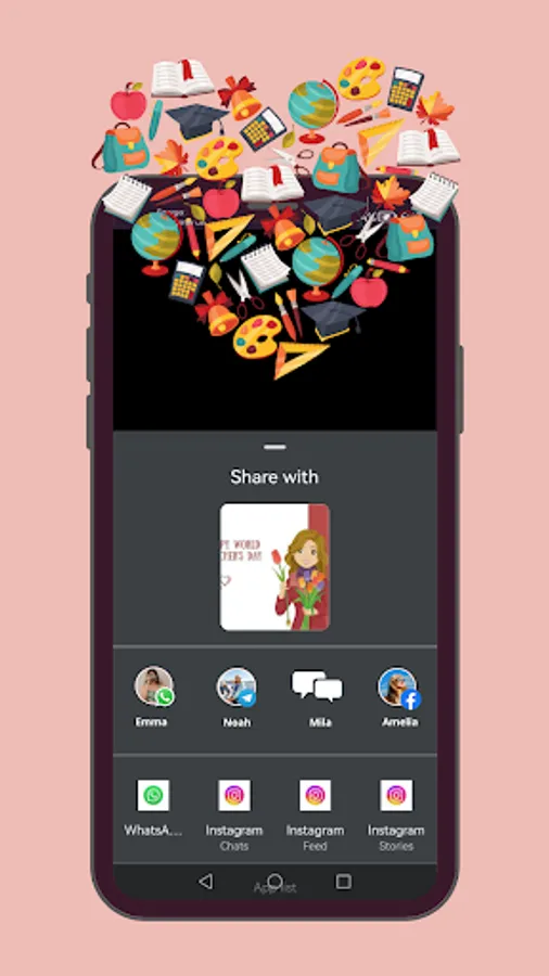 our app developers designed a nice teachers day greeting card to give you a lot of options to choose between them and make your teacher happy and proud of you.