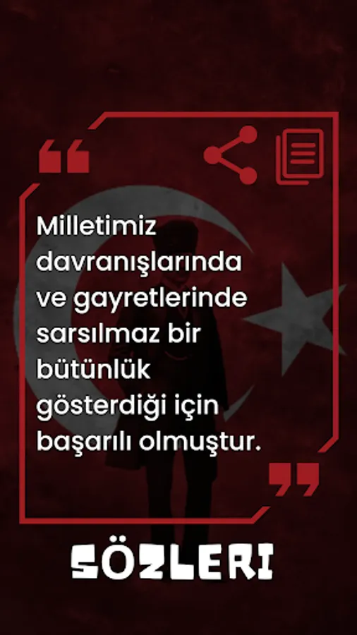 Atatürk's words about Victory Day. Hello Dear Angels, in this application we share the words of the Great Leader Mustafa Kemal Atatürk for the August 30 Victory Day and we already say Happy Victory Day to all Turkish Nation and here we say the words of Atatürk's Victory Day! The Great Leader said the following words at the second year celebrations of the 30 August celebrations: “Nobody knows: Our nation was on the verge of the darkest misery and the deepest abyss on the day it took its sovereignty. All their strength was worn out, all their means of defense were taken away, their sacred possessions were attacked, and they were in a very pathetic state.