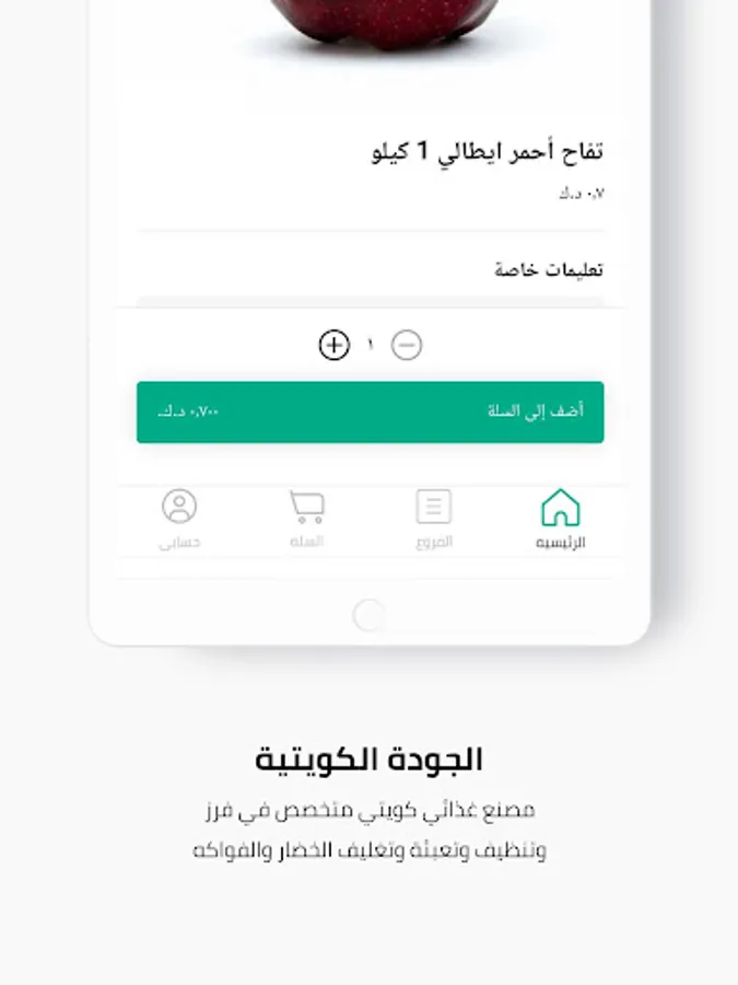 لقد قدمنا لك تطبيقنا لاستكمال تجربة تسوق الخضار والفواكه الفريدة التي اعتدت عليها بالتسوق من شركة الجودة الكويتية ولتسهيل عليك طريقة التسوق والاستمتاع بالمزايا والمميزات الخاصة المتوفرة داخل التطبيق.