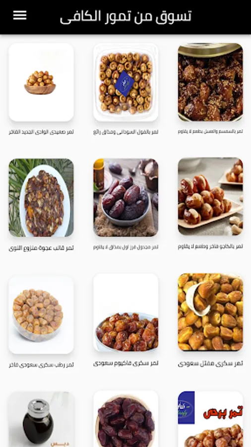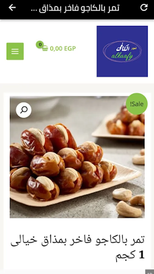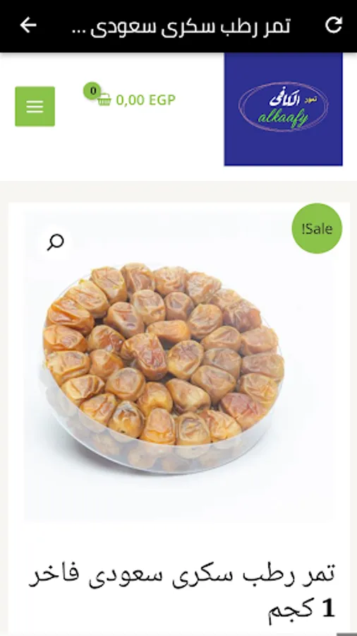 The Alkaafy dates application is characterized as an application to match all types of dates, as we have many types of Egyptian dates, Saudi dates, New Valley dates, Oasis dates, and we have the best offers on dates, and we have the luxurious Saeedi dates, New Valley dates, Saudi green dates, Saudi Sukkari wet dates, and Sukkari vacuum dates Saudi, Saudi Barhi dates, Medjool dates, Sukkary dates, Saudi muftal, and there are Lina dates with sesame, dates with peanuts, dates with cashews, dates with pistachios, dates with almonds, date molasses, pomegranate molasses, pure natural bee honey, and all date products