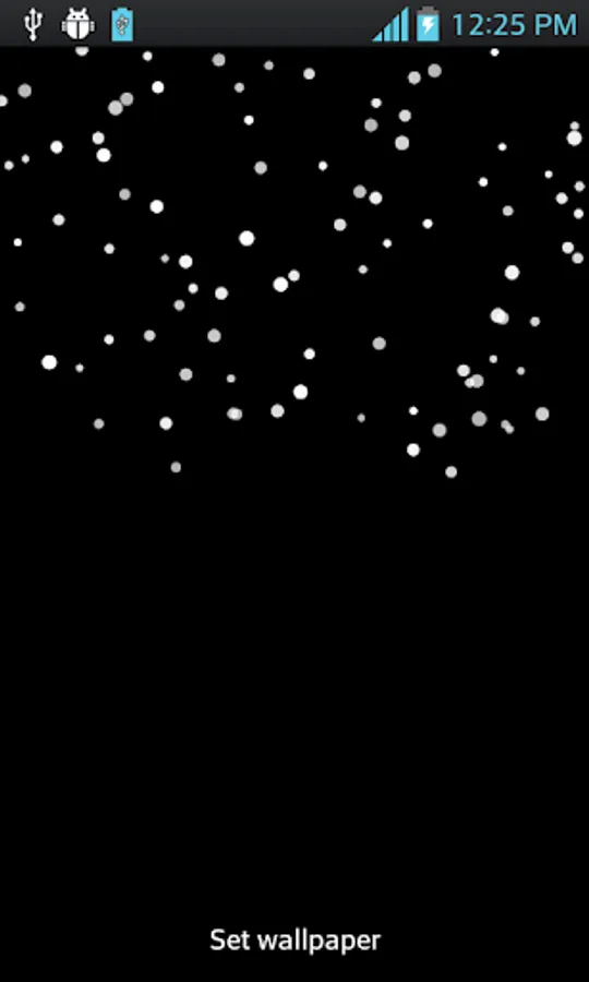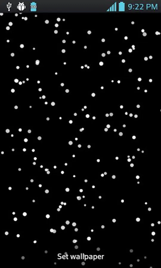 This is a simple snowfall live wallpaper which has small snowflakes falling in the dark. This is the best choice for people who like black wallpaper with very minimal animation. The wallpaper is optimized to use minimal battery and is very lightweight.