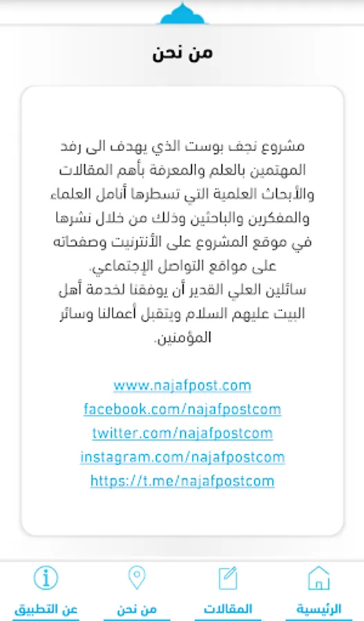 Najaf Post project, which aims to supplement those interested in science and knowledge of the most important scientific articles and research Tstrha fingertips scientists, thinkers and researchers, through the dissemination of the project site on the Internet and its pages on social networking sites.