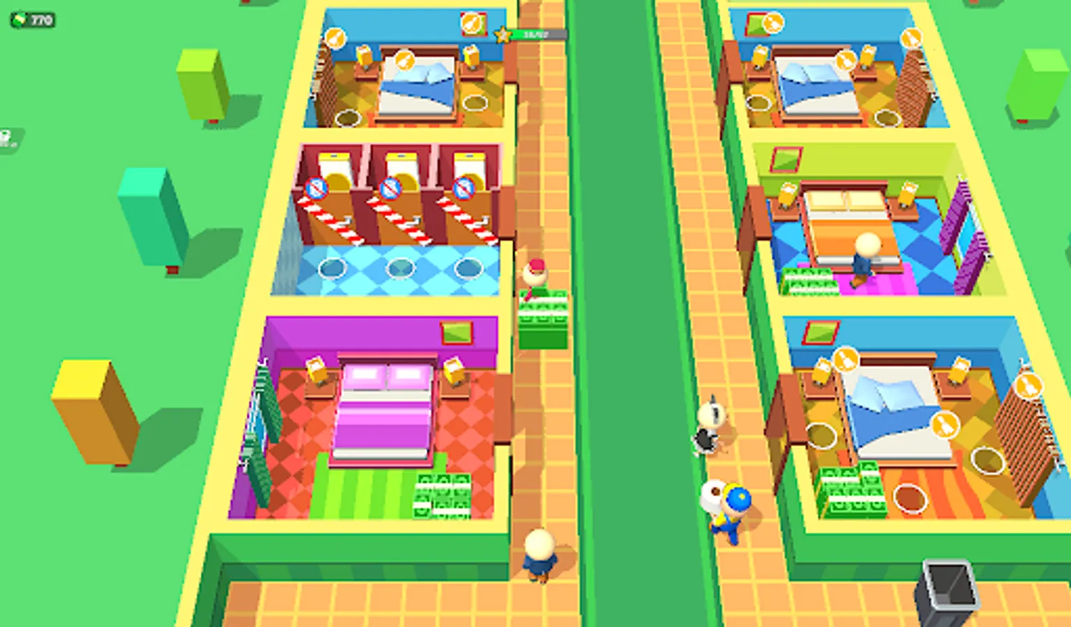Upgrade your hotel: As your bank balance expands, upgrade rooms and facilities, and employ new staff to help keep up with the growing demand at your hotel.