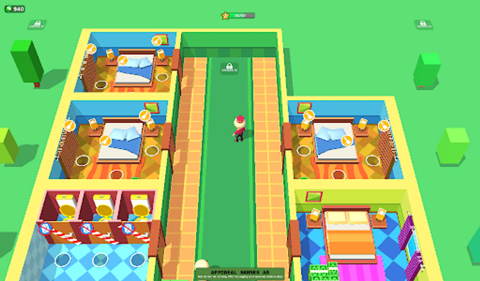 Add amenities: Maximise profits and get more funds to invest in this fun simulator by ensuring your hotels have all available amenities, such as bathrooms, vending machines, restaurants, parking lots, and swimming pools.