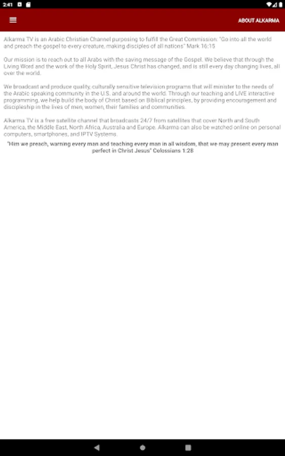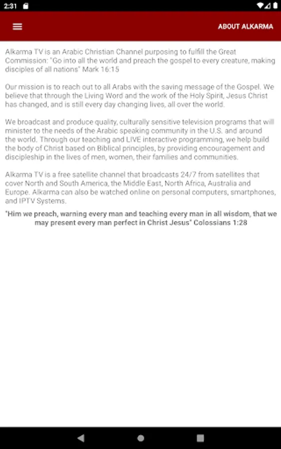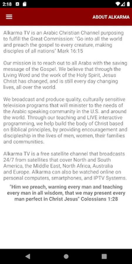 Alkarma TV is an Arabic Christian Channel purposing to fulfill the Great Commission: