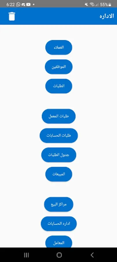 حساب يتحكم في جميع الحسابات ولديه القدرة على حذف حسابات الموظفين وعرض البيانات المتعلقة بالطلبات وإضافة الفروع