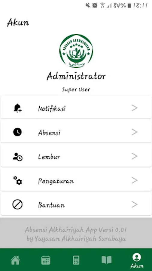 Aplikasi yang digunakan untuk absensi dan aktifitas human resurce departement lainnya untuk karyawan Yayasan Alkhairiyah Surabaya
