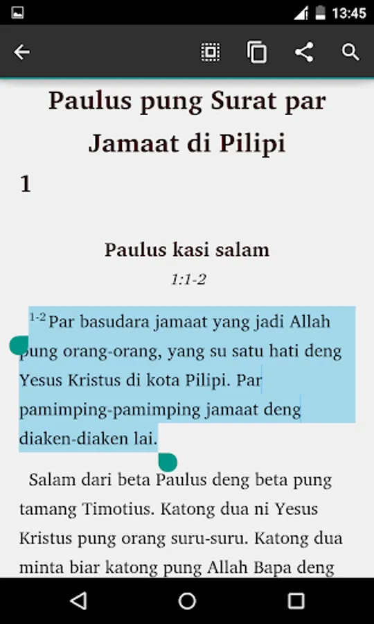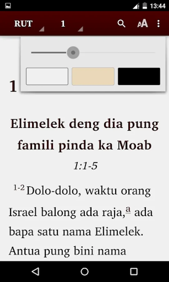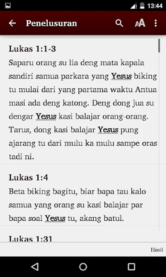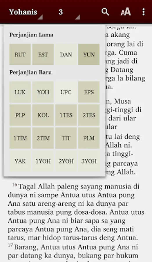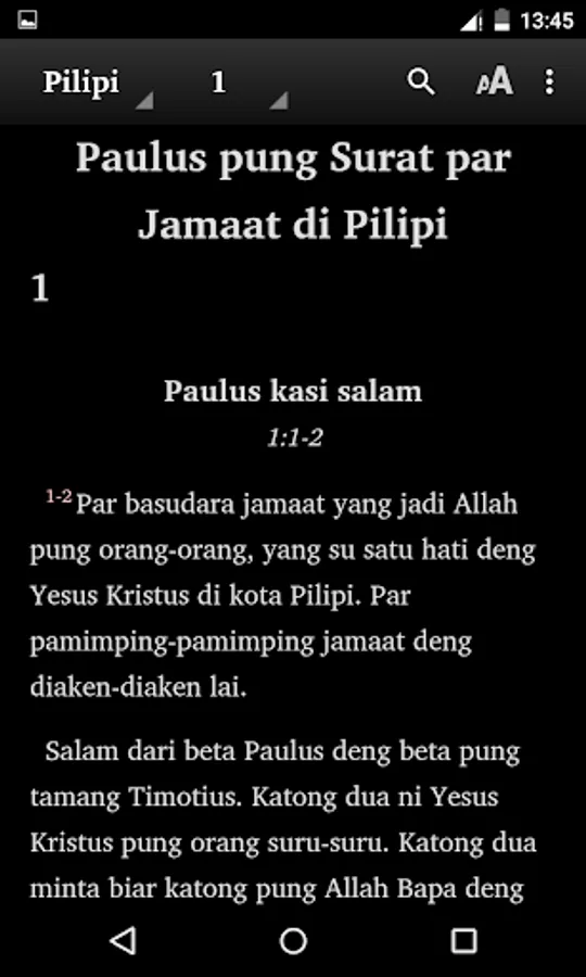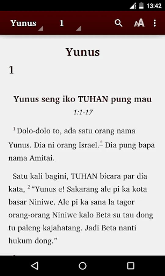 First Ambonese Malay Bible app for Android. Current version (1.5) contains Old Testament portions (Ruth, Esther, Daniel, Jonah) and New Testament in Ambonese Malay. Available absolutely for free to download and use.