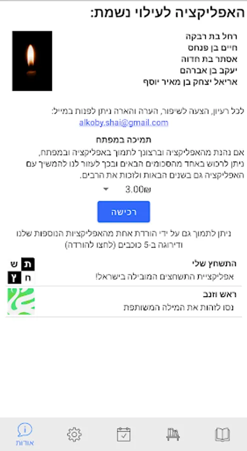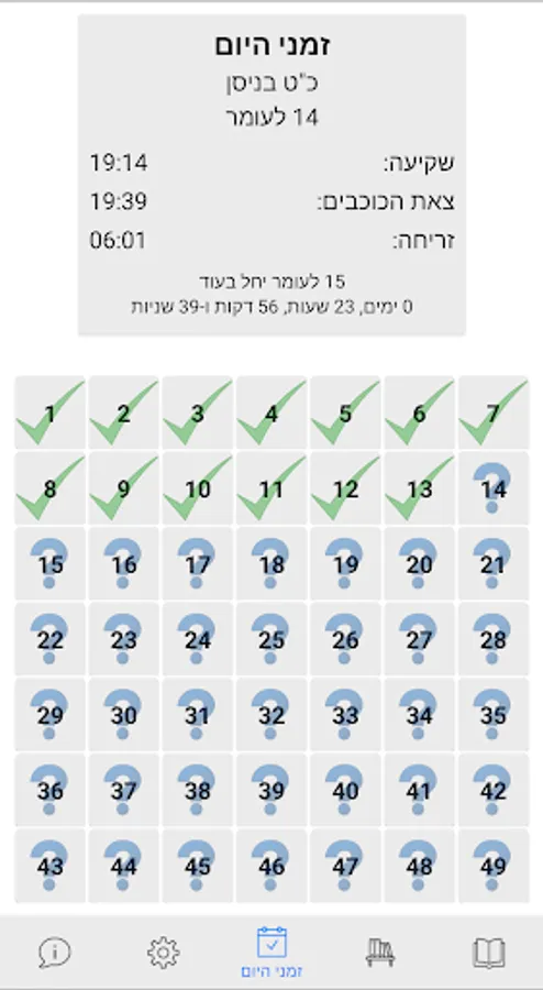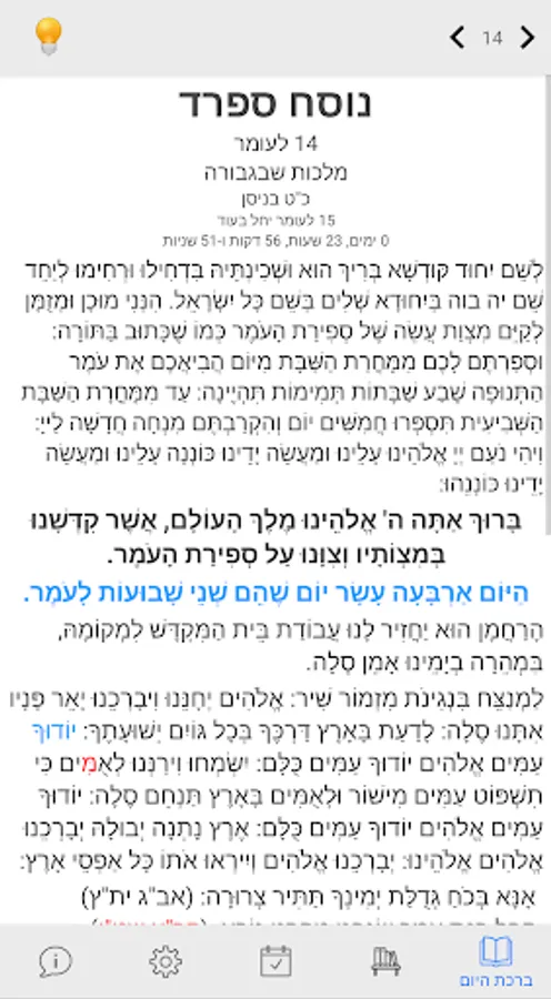 Application for counting the Omer which includes: