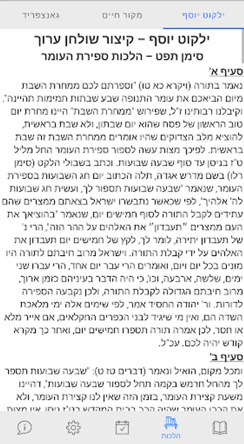 - Laws of Omer: Ganzfried, Mekor Chaim Wilkot Yosef.