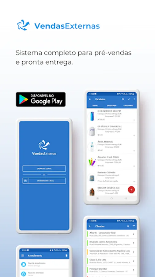 VendasExternas serves companies that operate in the pre-sales and/or prompt delivery regime for sales force management.
