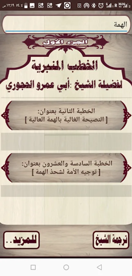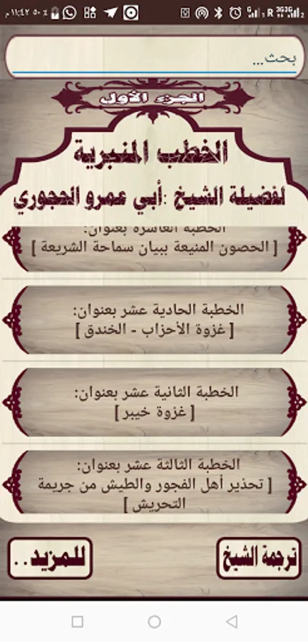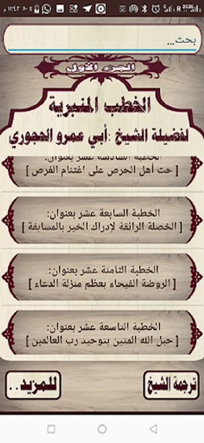 This application contains 70 discrete Friday sermons from the audio recordings of His Eminence Sheikh / Abi Amr Al-Hajouri, may God protect him