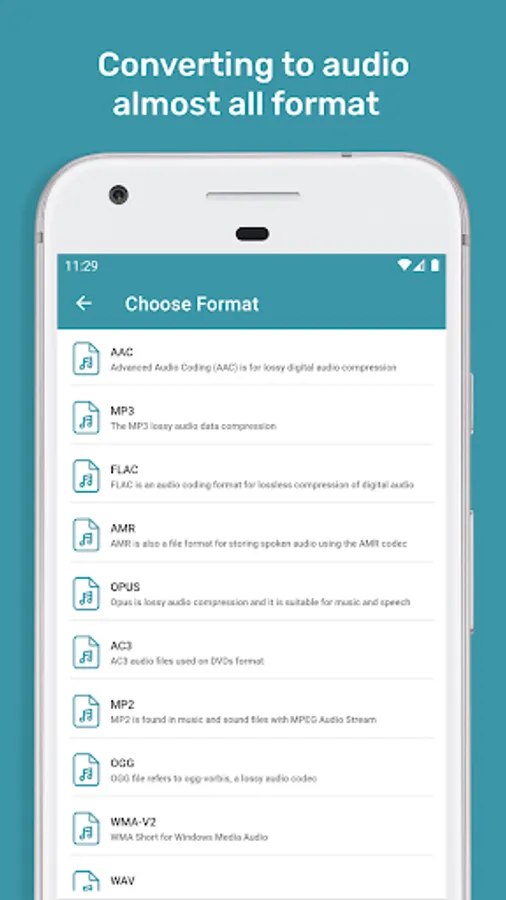 - Supports MP3, AAC, M4A, OGG, AMR, OPUS, WAV, AC3, MP2, WMA and more