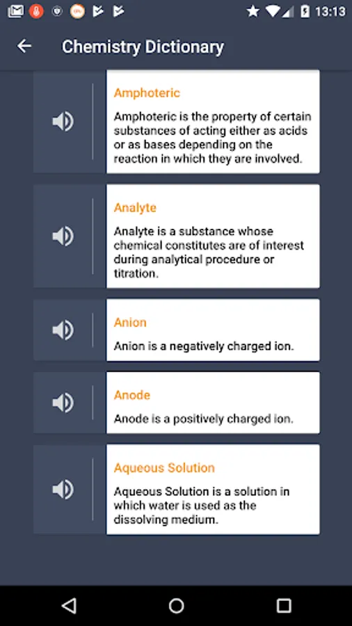 - Prepare Bookmark list of Chemistry word just by clicking on Heart. Red Heart will mark the word into your Bookmark List.