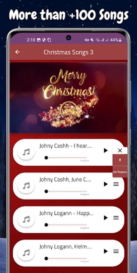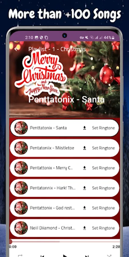 The best offline Christmas tunes are available in the Christmas Songs app. A fantastic compilation of well-known Christmas tunes, Christmas Songs. 🔥⚡