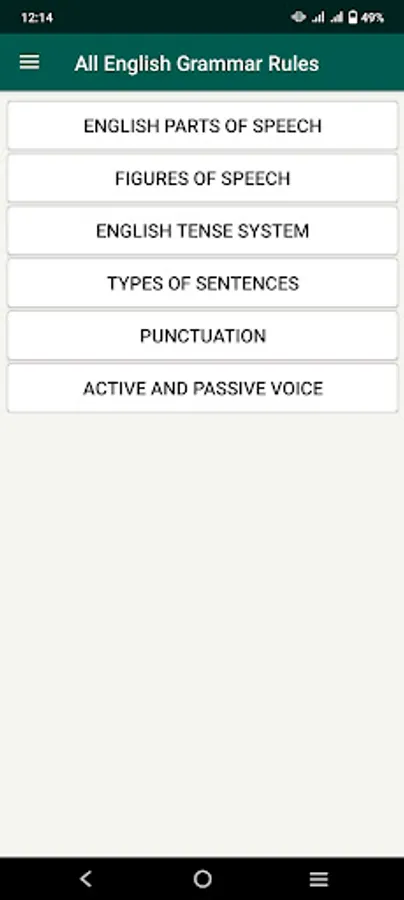 Introducing the Grammar Rules App, the ultimate tool for learning English grammar right on your Android device. This grammar learning app is specifically designed for English language learners of all levels, from basic english grammar beginners to advanced learners easily. Explore advanced English grammar topics and delve into all English grammar rules with ease. It's the best app available to learn English grammar test, providing a comprehensive and user-friendly experience.