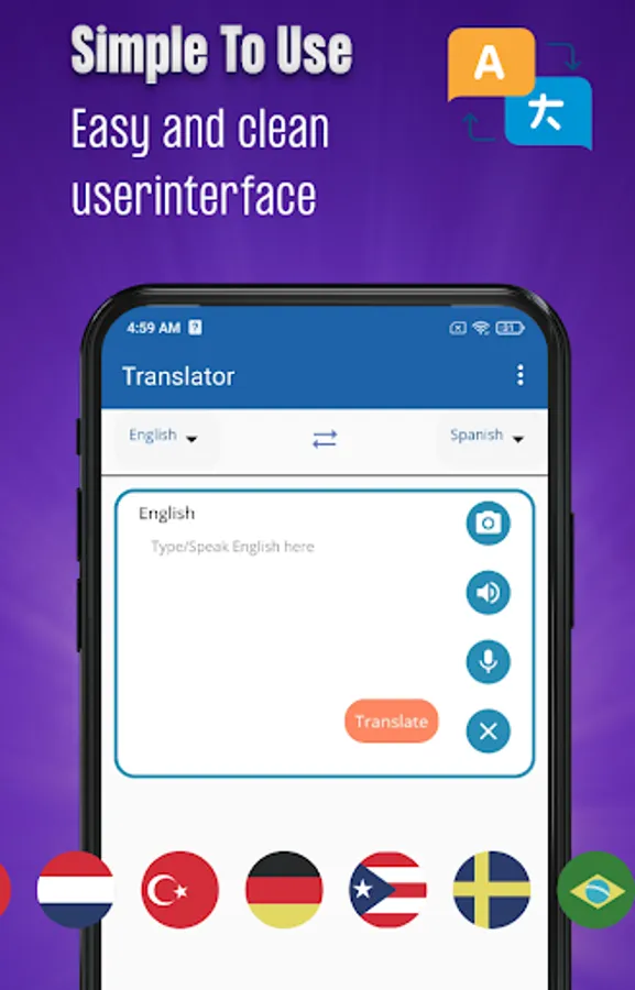 All in one language translator is an amazing tool that improves your language learning skills. Language translator offline is a free all-language translator app, a personal translation app for 100 plus languages, to translate text, voice, conversations, camera photos, and screenshots. The language translator scanner app is a language translation expert that allows you to translate from English to any other language.