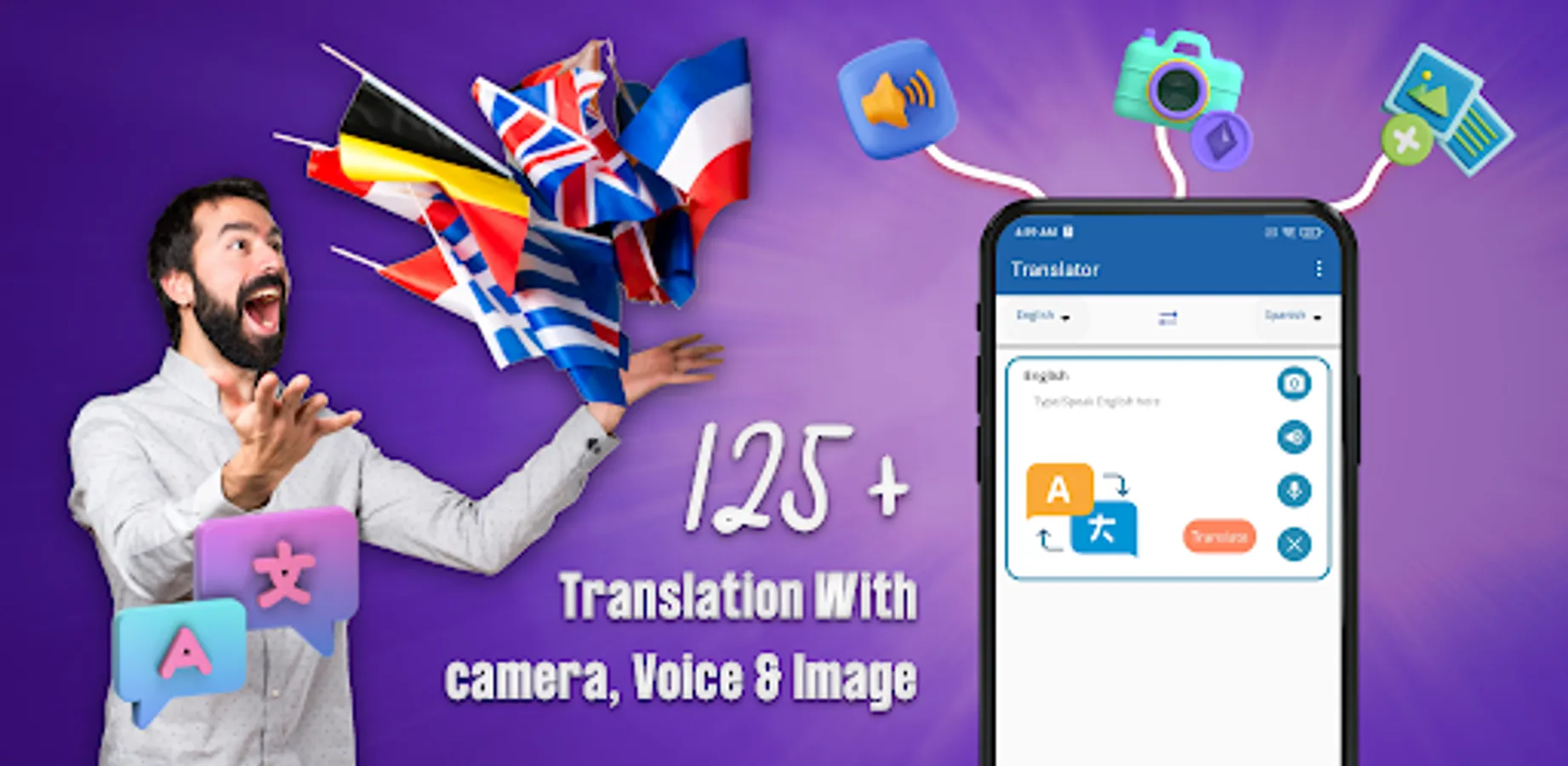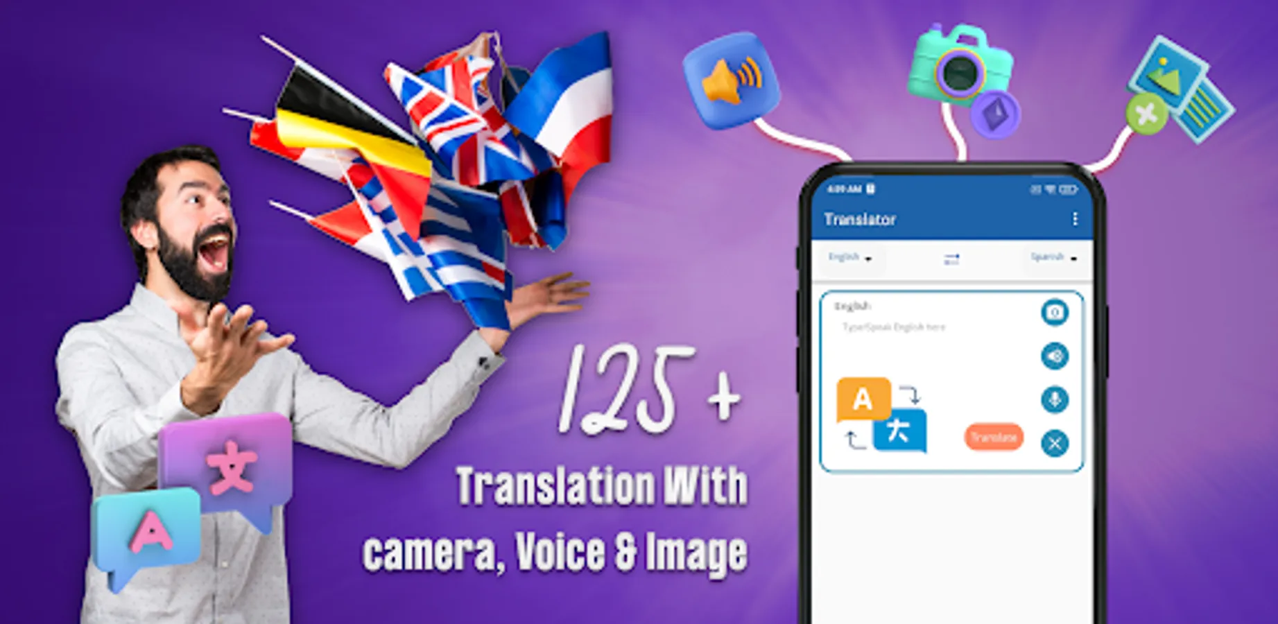 All in one language translator enables travelers, students, business professionals, employers, and medical staff to read, write and speak in the desired languages and translate anywhere in the world. The voice translator app is handy when you are out of the country or in a place where you don't know the local language or somewhere foreign. The Image Translator app allows you to speak and translate between multiple languages. This is the new era of online language translation. The language translator scanner app offline was developed with ease of use and is ideal for beginners. Talk & Translate is all translator voice camera all languages ideal for traveling abroad or when you want to learn languages for free.