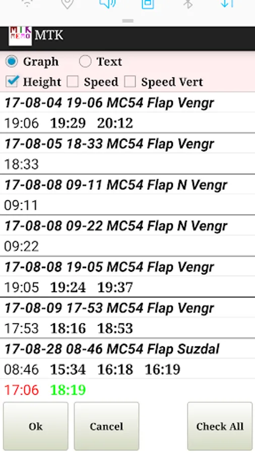 - show altmeter data(telemetry) graphically or as a table;
