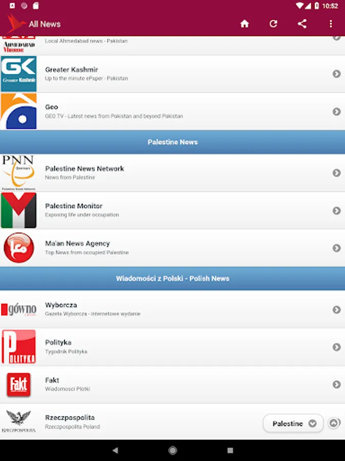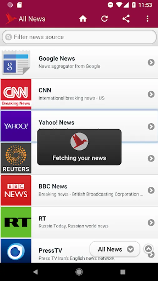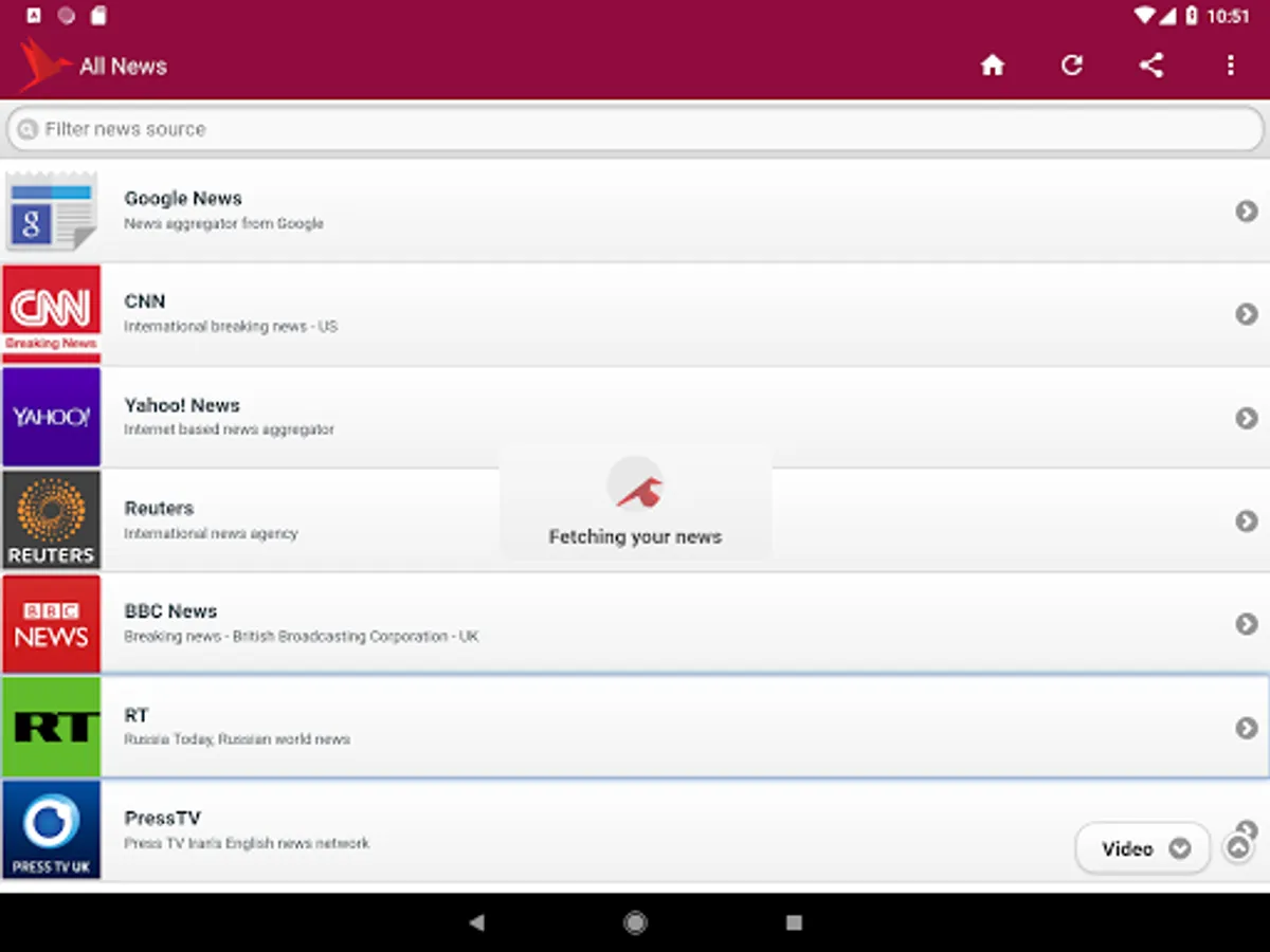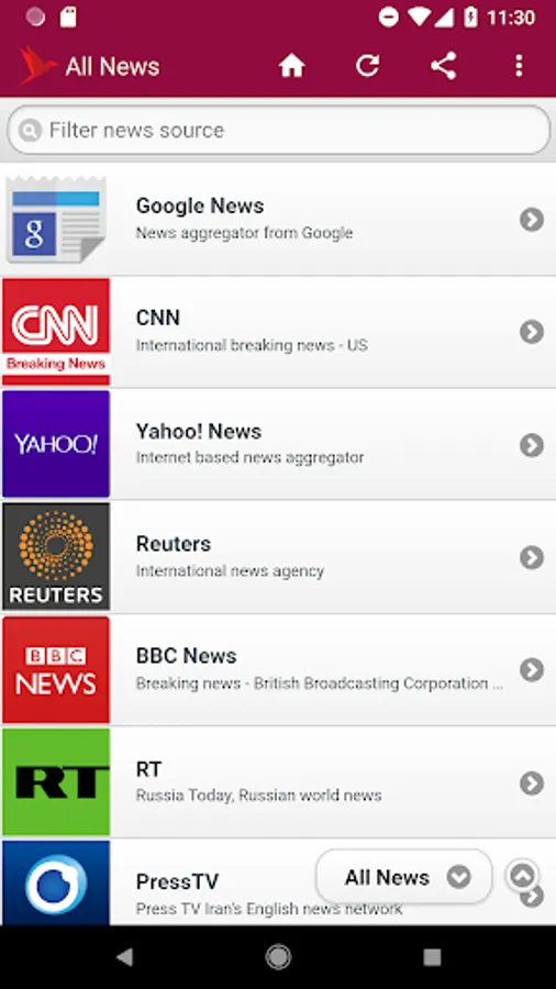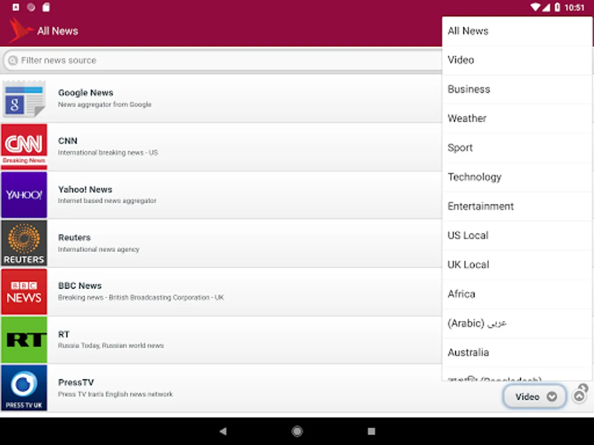 - Includes a quick search filter, enter the name or part of the name of your favorite news source to find it quickly