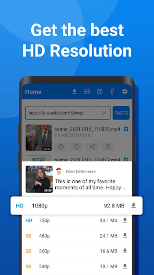 * Fast download speed with HD video downloader