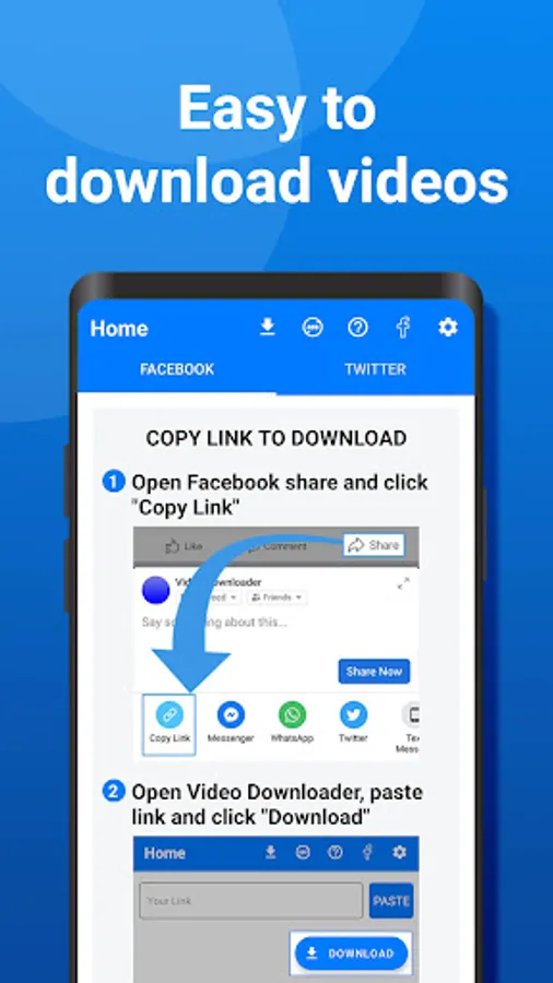* Auto detect videos, and tap the download button