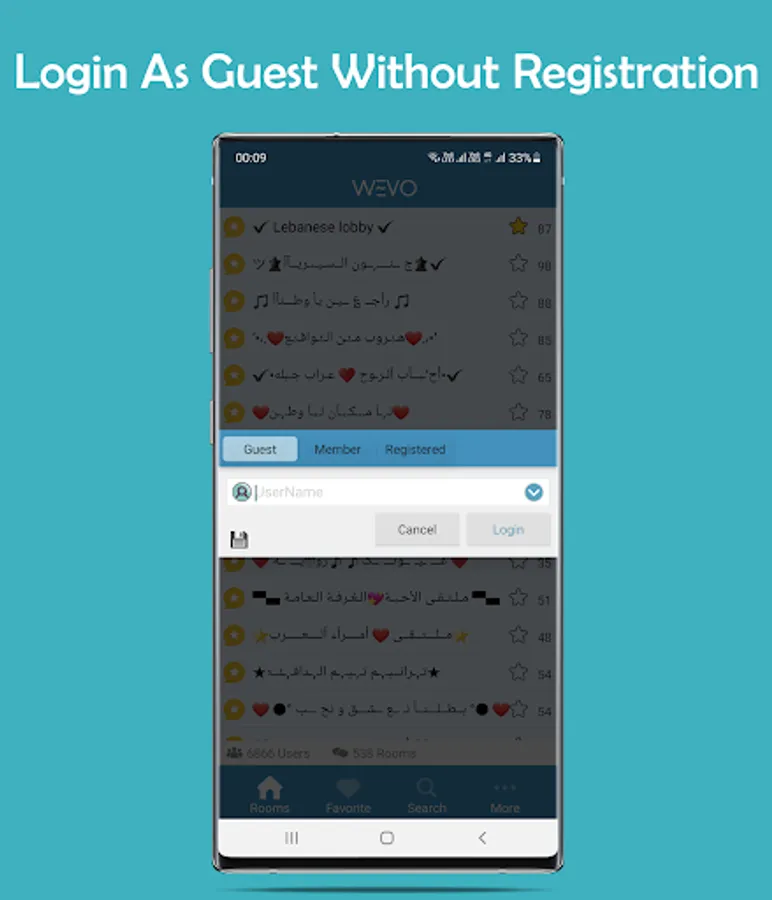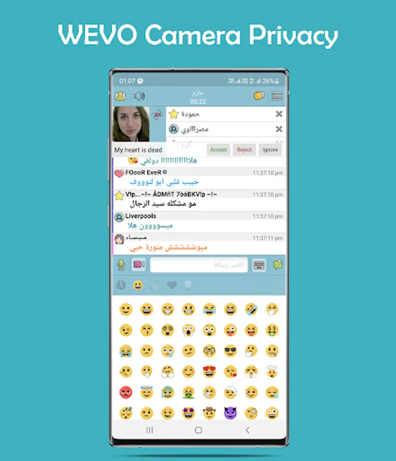 WEVO, Now you can chat (audio,video) with your family and thousands of users in the world for free, and have the fun using Wevo rooms.