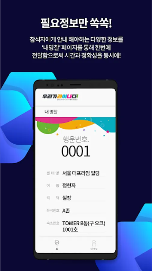 If the current event information / bus route information / room information / event seat information / name tag confirmation function is provided, useful functions will be continuously added so that it can be used for various corporate events.