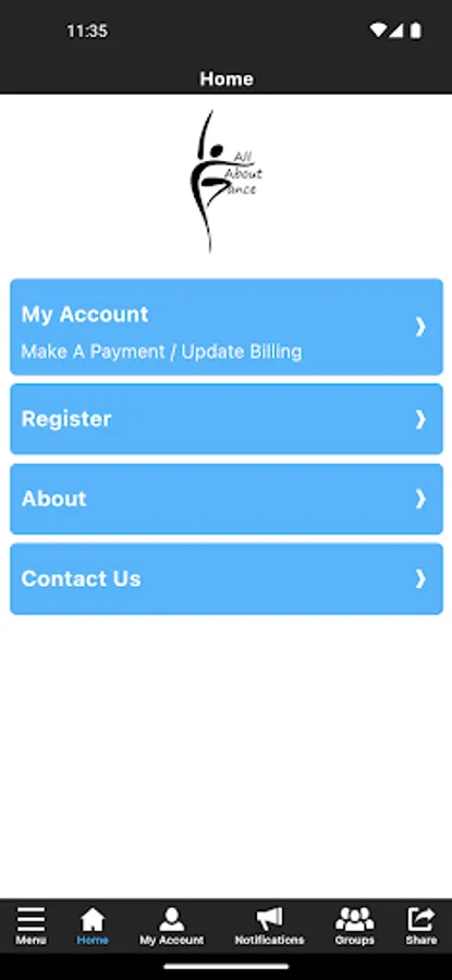 The All About Dance app allows you to manage your account with ease, register for classes, parties, and special events. You'll also receive important notifications about class changes, closings, registration openings, special announcements, and upcoming events.