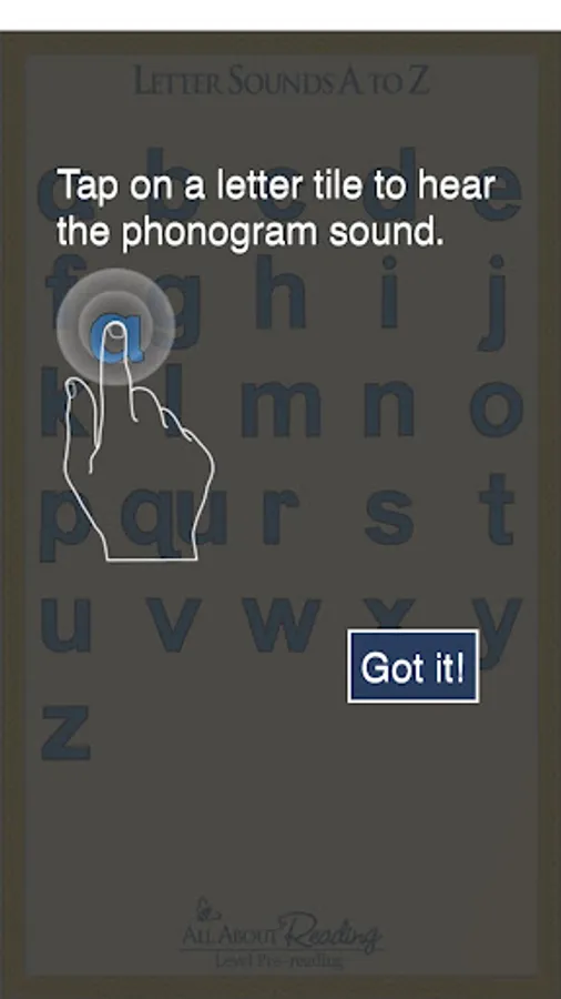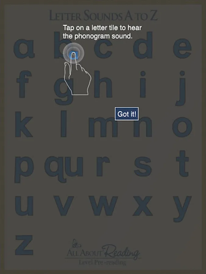 Touch a letter and hear the most common English sound of that letter! This app features clear enunciation of the sounds of the 26 alphabet letters. Designed for use with the All About Reading Pre-reading curriculum.
