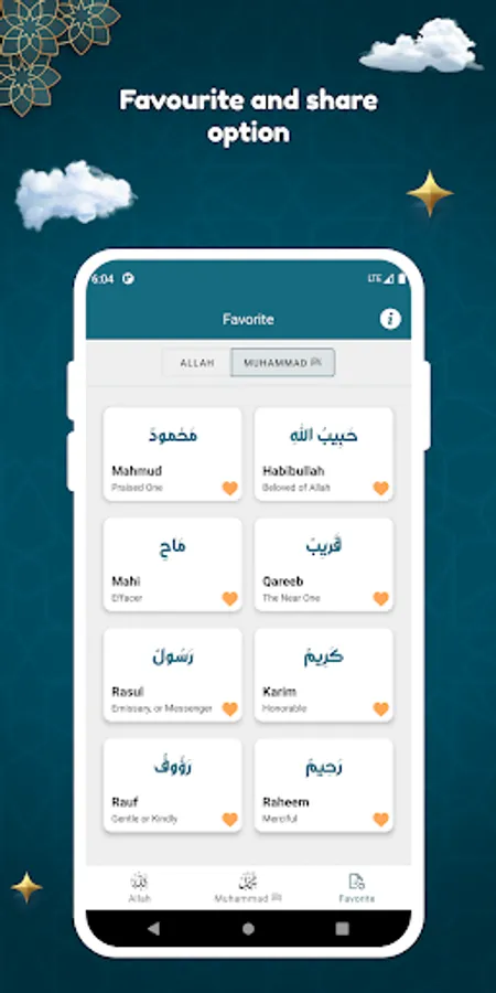 • Read all the 99 names of Allah & Muhammad in Arabic and English with Meanings