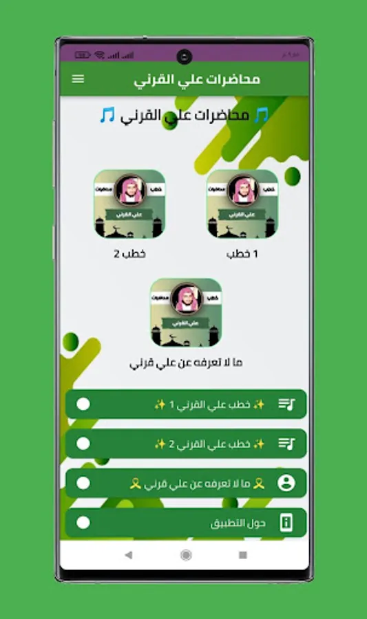This free application enables you to listen to the lectures of Sheikh Ali Abdul Khaliq Al-Qarni without the net. Download the sermons of Sheikh Ali bin Abdul Khaliq Al-Qarni without the net and start listening immediately. Within the application, you will find all the lectures of Sheikh Ali Al-Qarni without the net, by Sheikh Ali Abdel-Khaleq Al-Qarni without the net, without the slightest need to connect to the Internet.