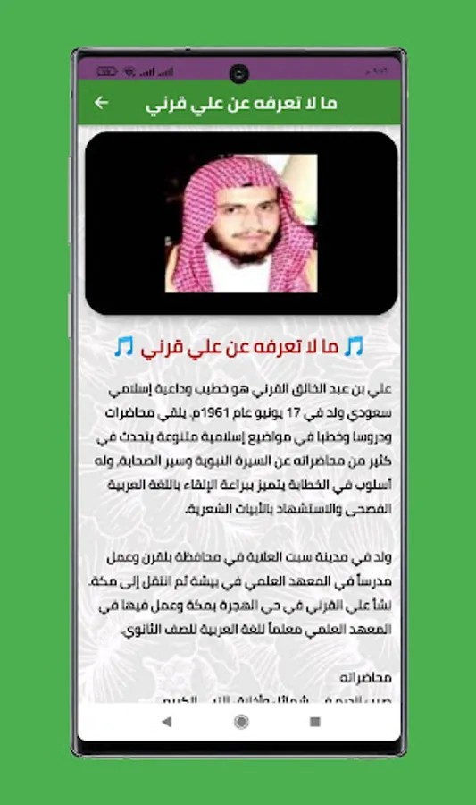 Download now the Ali Al-Qarni lectures application and share it with your friends, may God bless our beloved Sheikh, and may God reward you on our behalf, and do not forget our 5-star rating