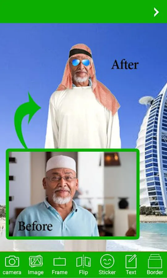The Arab Man Photo Maker app includes numerous frames so that you can create a Arab Man Photo in style. Up to 97 free beautiful free frames in our Arab Man Photo Maker provide you with a wide choice for creating a beautiful Arab Man photo. Give our Arab Man Photo Maker a try and see how easy it is to produce amazing result.