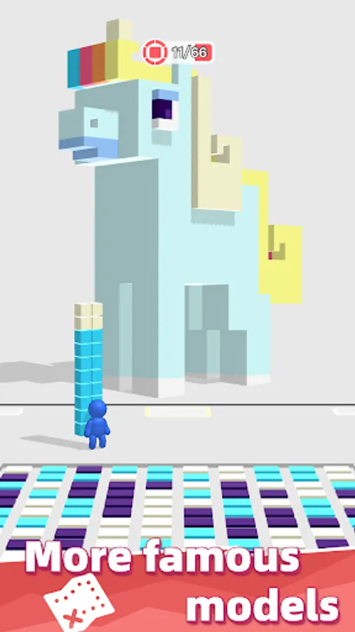 Choose from the colored bricks on the ground, just follow the hints to collect the number and color. Cool voxel models will be generated!
