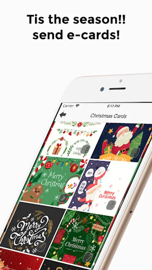 Christmas greeting e-cards is an app where users can use to capture their most precious Christmas moments and share it with their family and friends. All they've got to do is take a picture using their phone camera and then save it to their galley later on they send it using their other social media apps which is : Whatsapp,Instagram,Twitter,Facebook and etc.