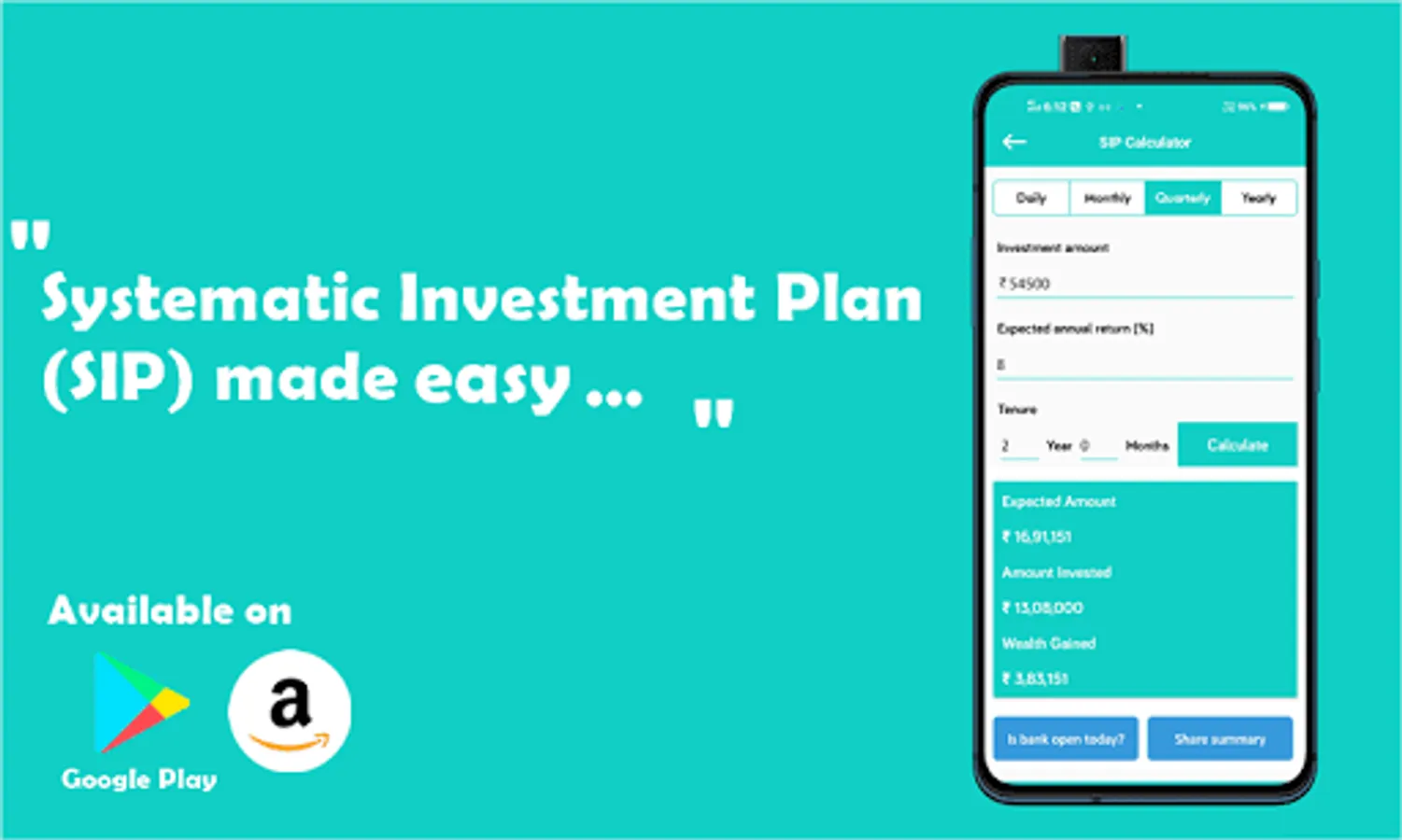 Systematic investment plan (SIP) is not that easy and not for everyone to calculate due to the complex calculation, but hold on the All Bank Account Balance Checker app provides various sip calculators such as: sip calculator for mutual funds, sip calculator for loan, sip calculator with inflation rate, sip calculator with top-up all for free.